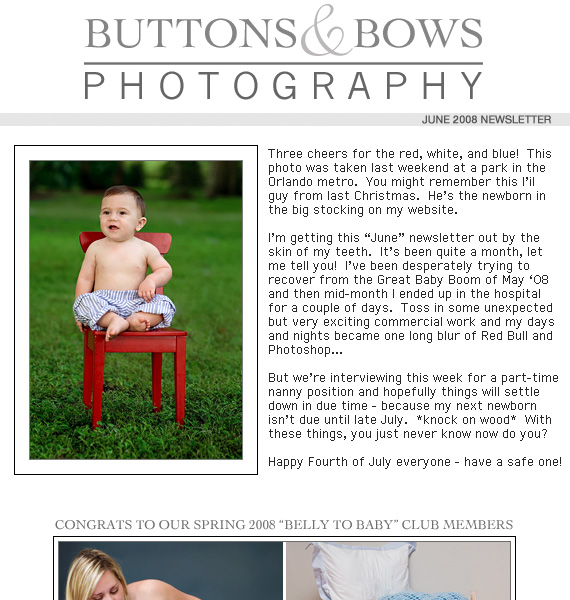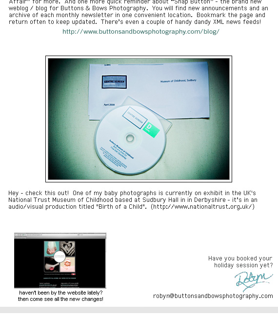 ![]() ![]() ![]() our designer announcement collection: http://www.buttonsandbowsphotography.com/print/announcements.html if you have trouble viewing HTML mail go to: http://www.buttonsandbowsphotography.com/mail/June08/ miss one? click here to view last newsletter: http://www.buttonsandbowsphotography.com/mail/May08/ ![]() to unsubscribe from newsletter: http://www.buttonsandbowsphotography.com/unsubscribe.html |